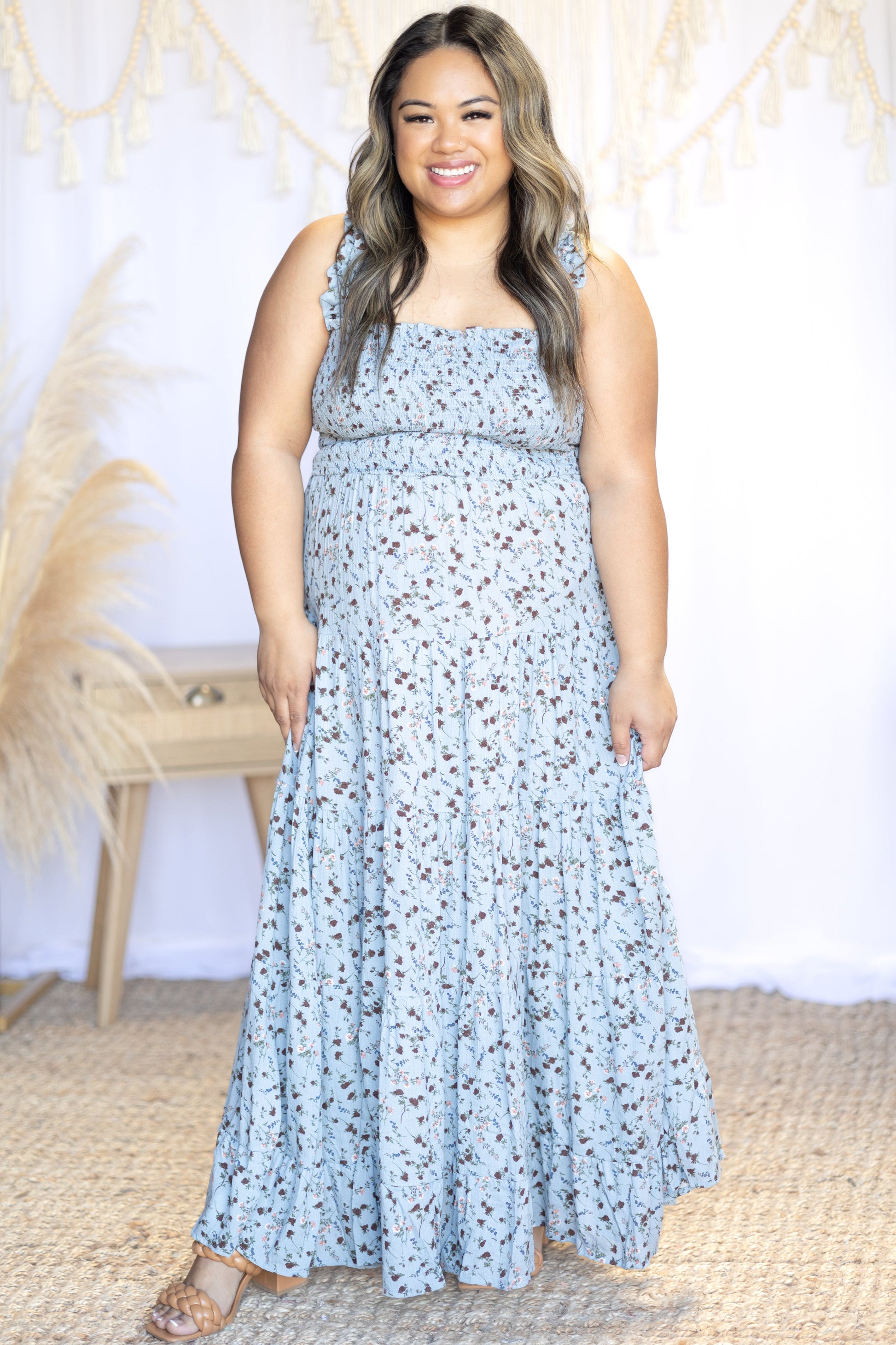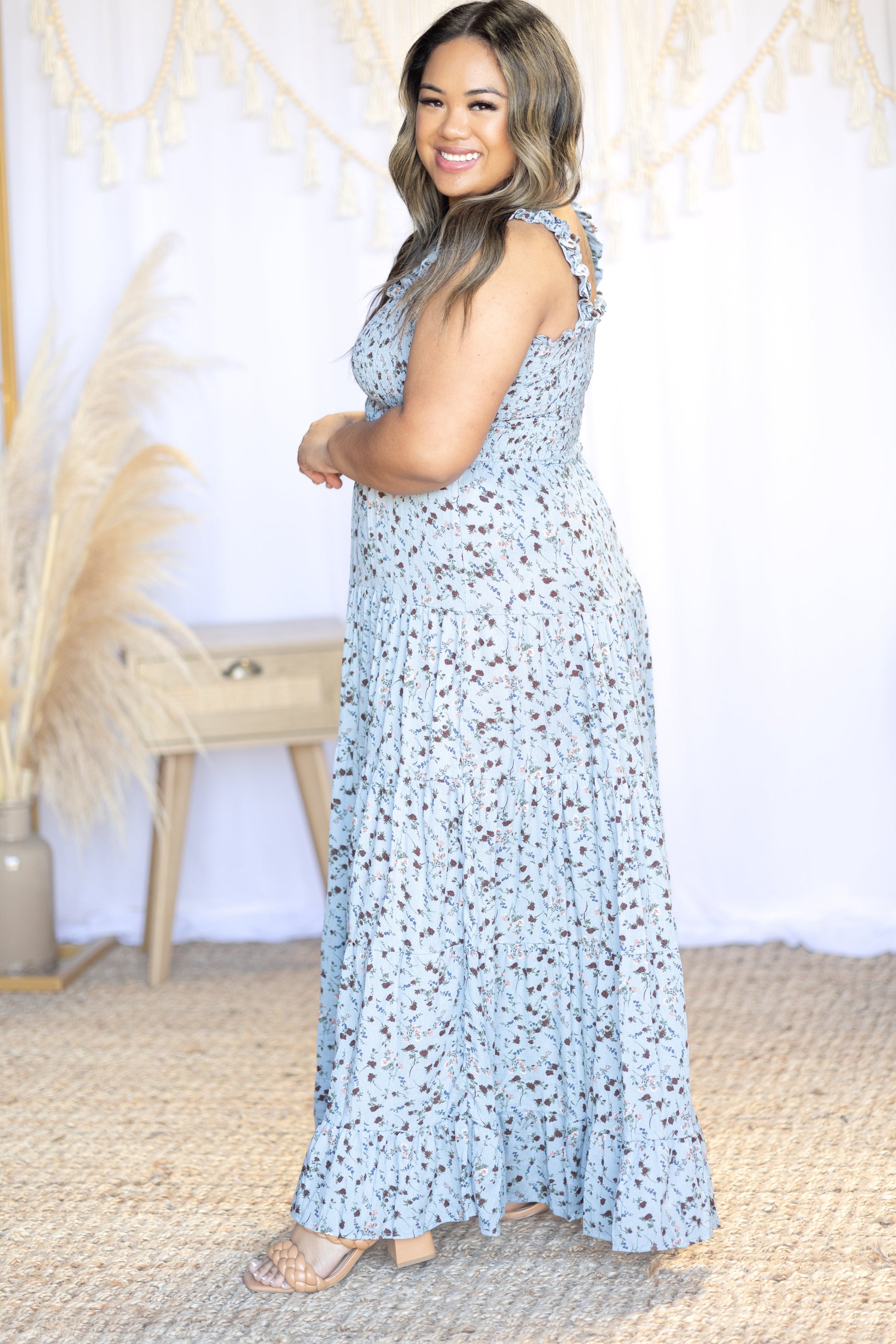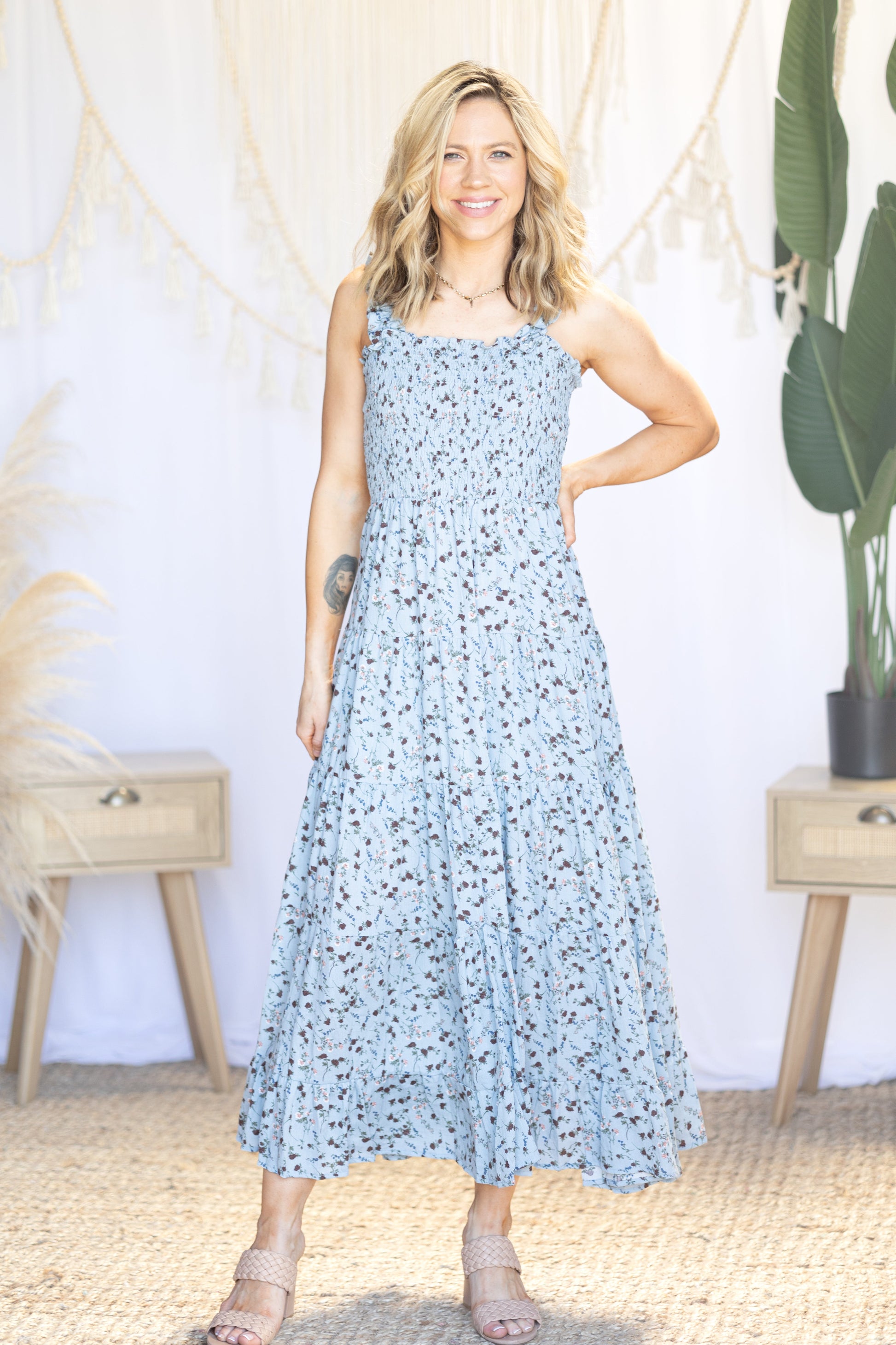 Set the stage for the perfect brunch date with this denim floral maxi dress! With an ultra-flattering ruched bust, elasticized straps, and tiered ruffle hem, you'll feel totally femme and fabulous. Plus, the square neckline keeps you lookin' cute and classy!