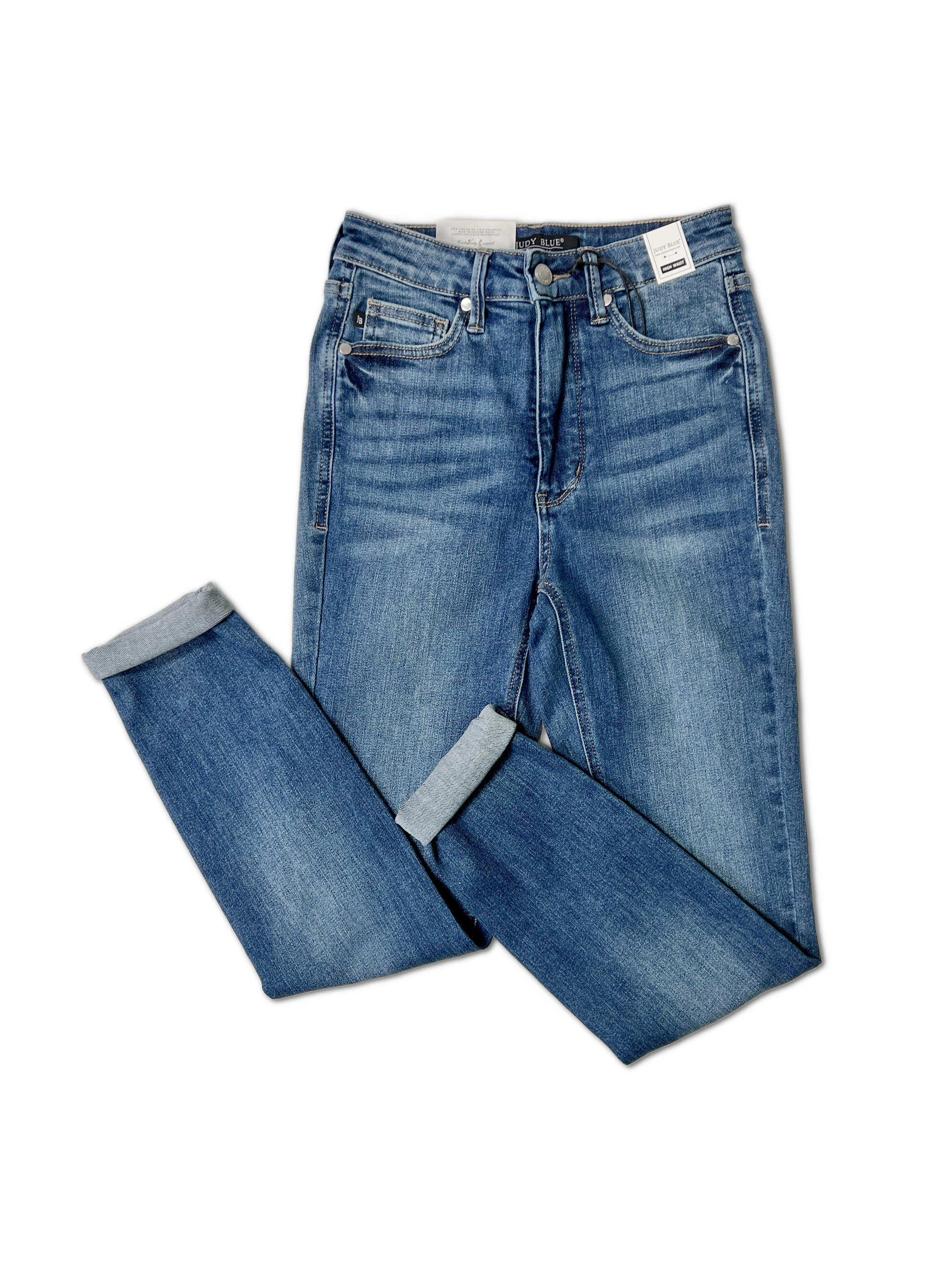 Say goodbye to uncomfortable jeans and hello to Bye Bye Bye Tummy Control Judy Blues! With their stretchy denim, classic skinny fit, and non-distressed style, these jeans not only flatter your figure, but also provide a tummy control panel for extra support.