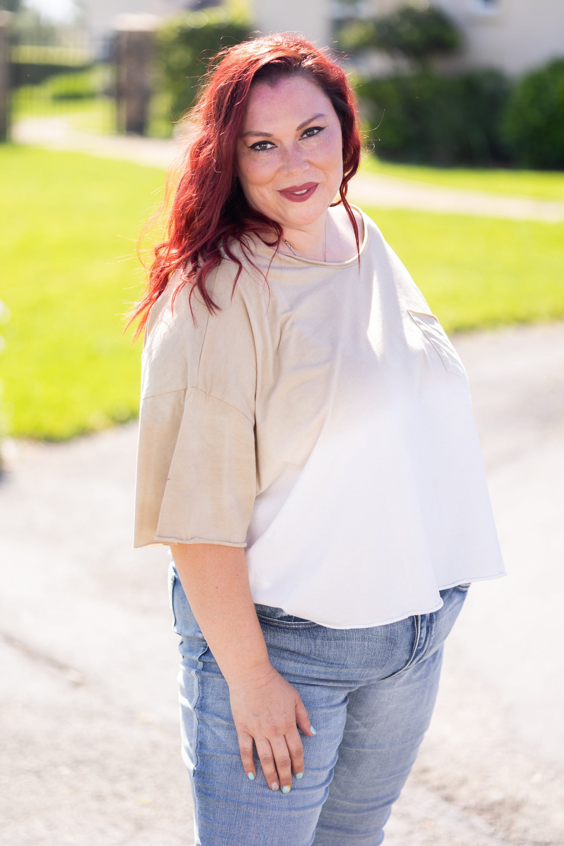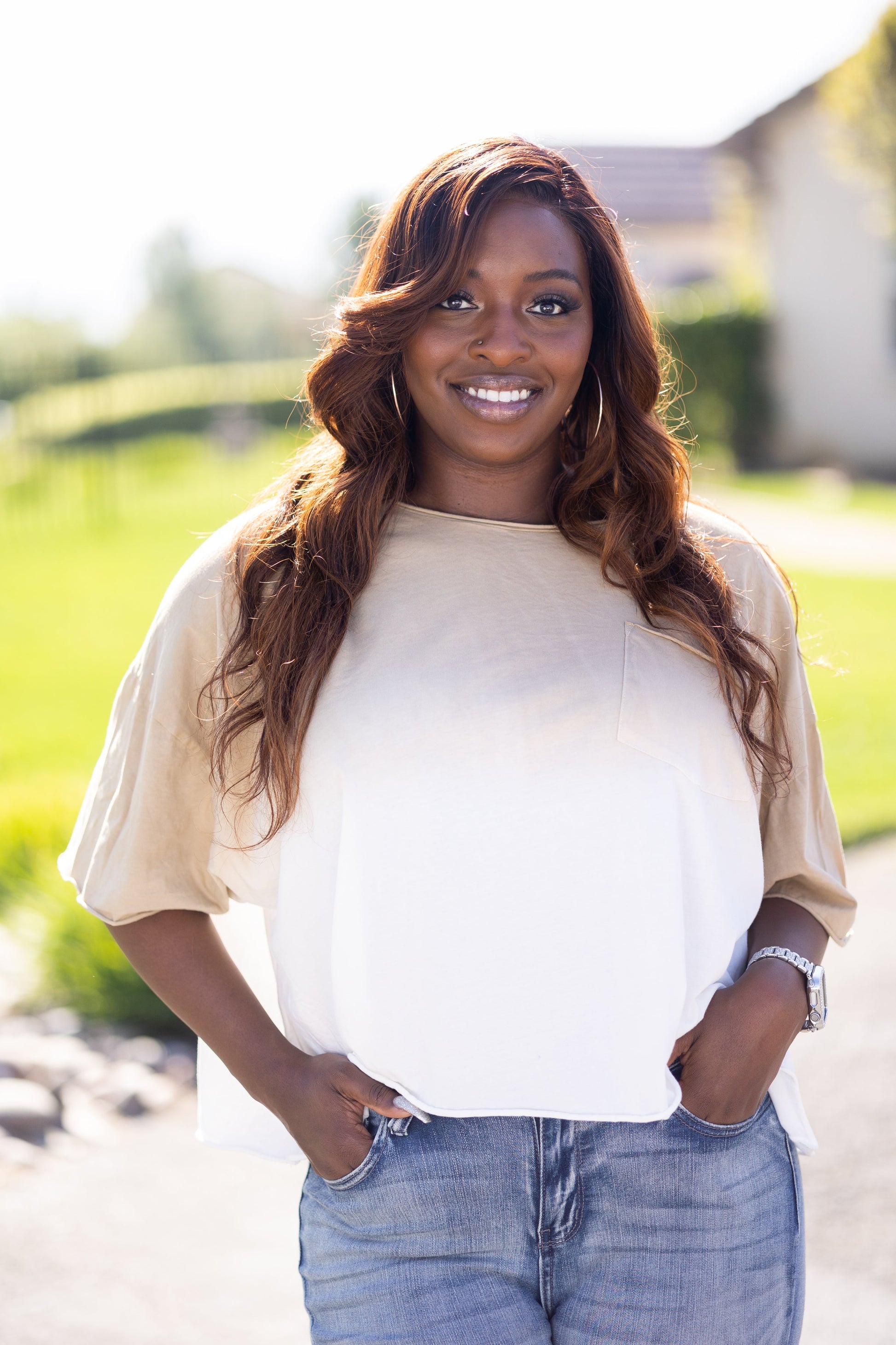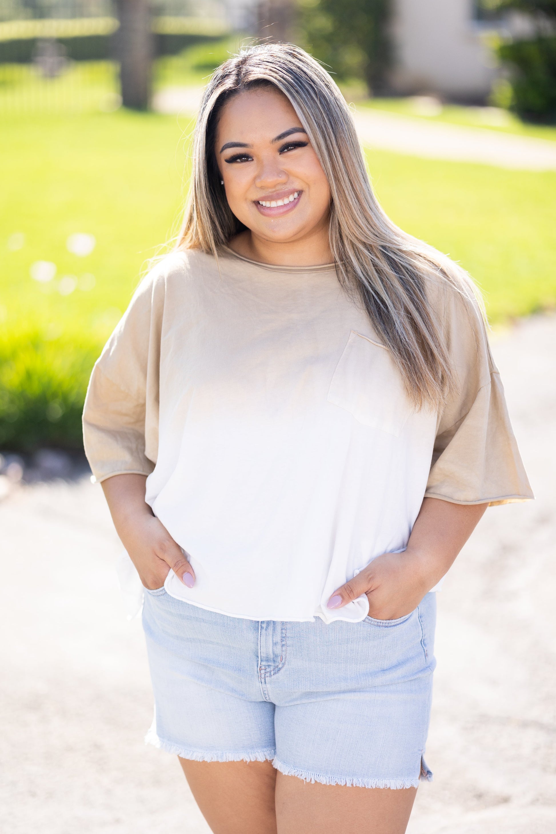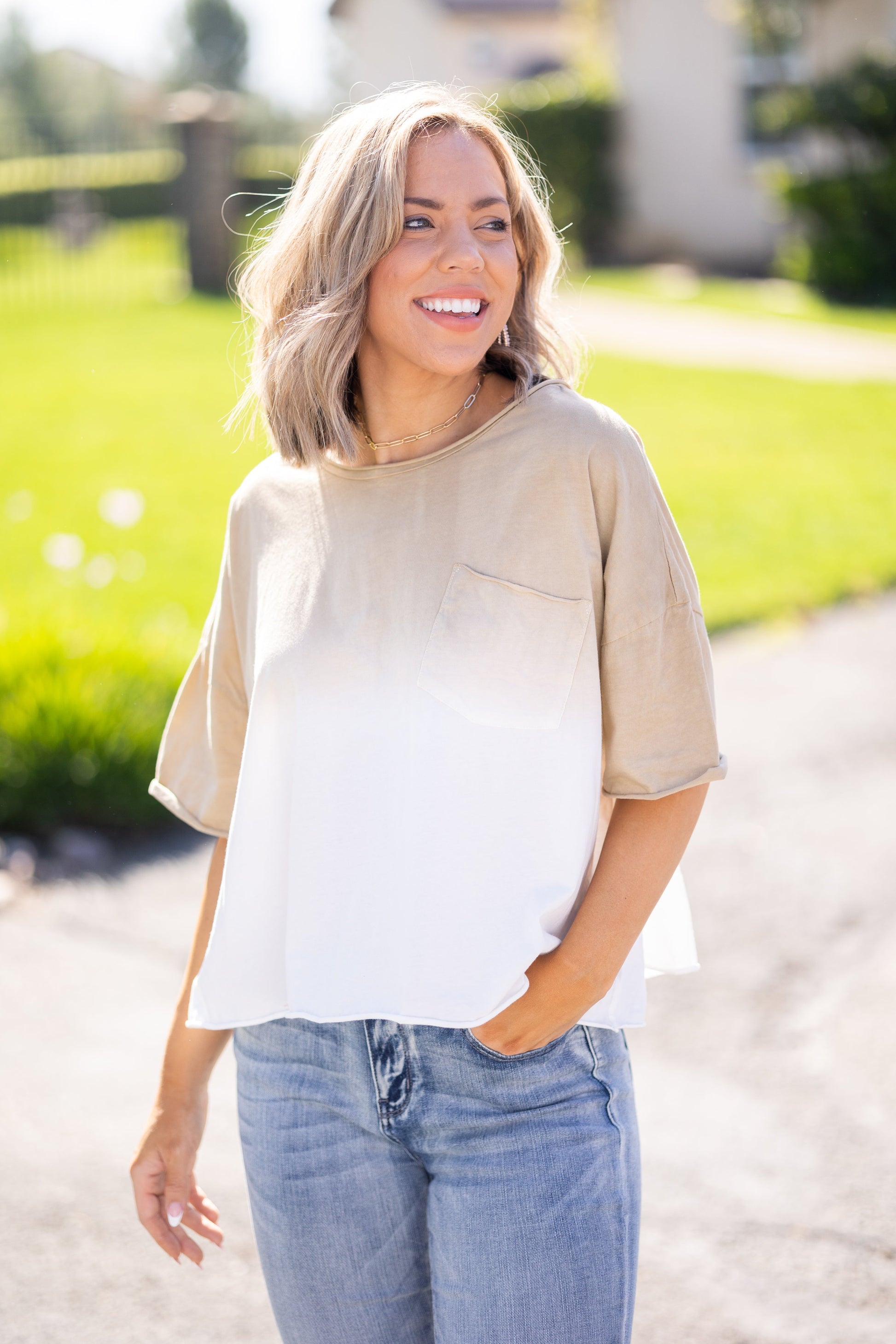 This is the perfect top to wear with those high rise shorts and skinnies you have. With a relaxed fit, this crop top features a round neckline, short sleeves and pocket detail.