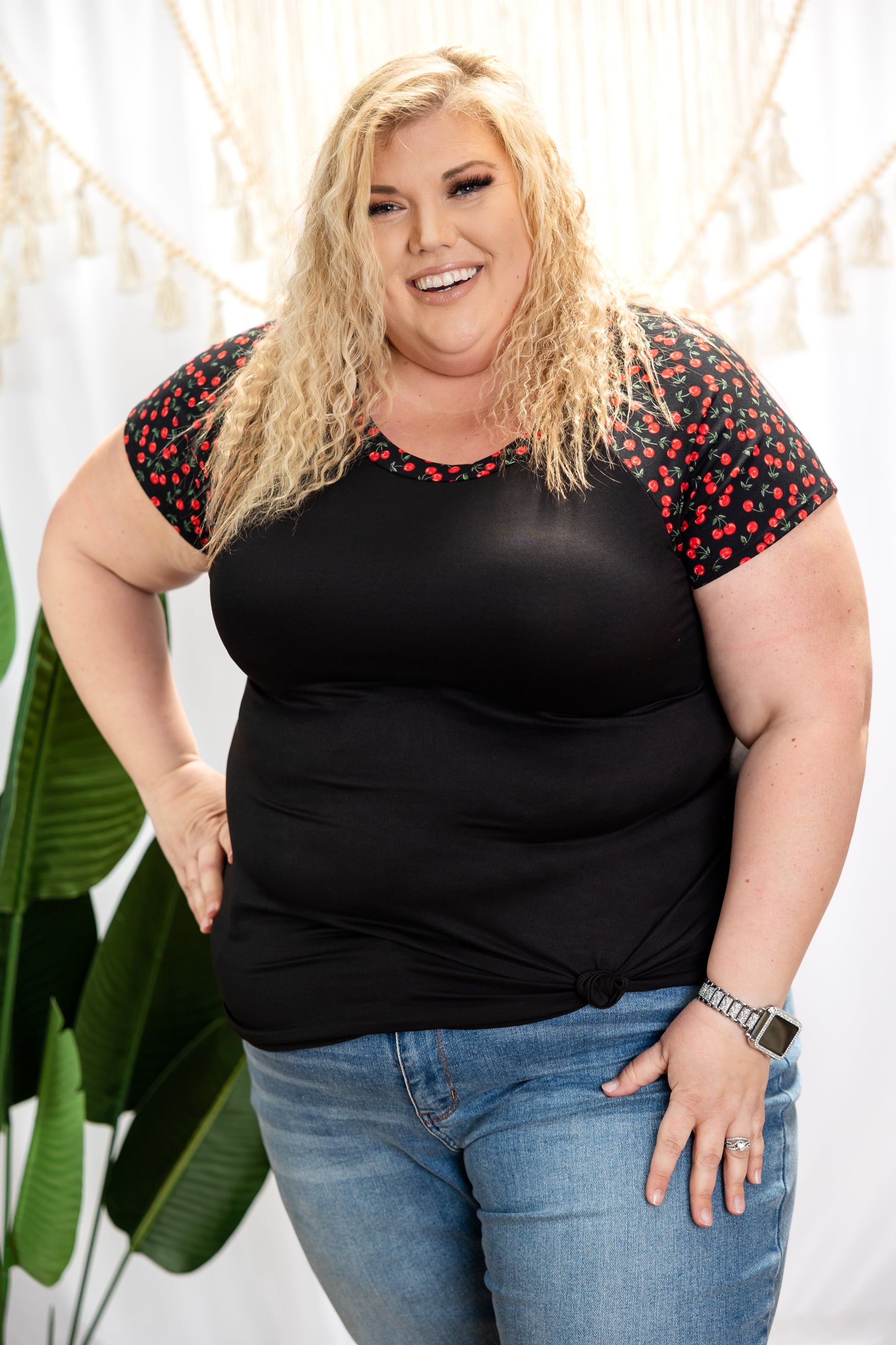 This fitted silhouette Cherry Pie - Short Sleeve Raglan has a round neckline, short raglan sleeves, and a rounded hem for a chic, flattering look. Perfect for achieving a stylish and comfortable look every time.