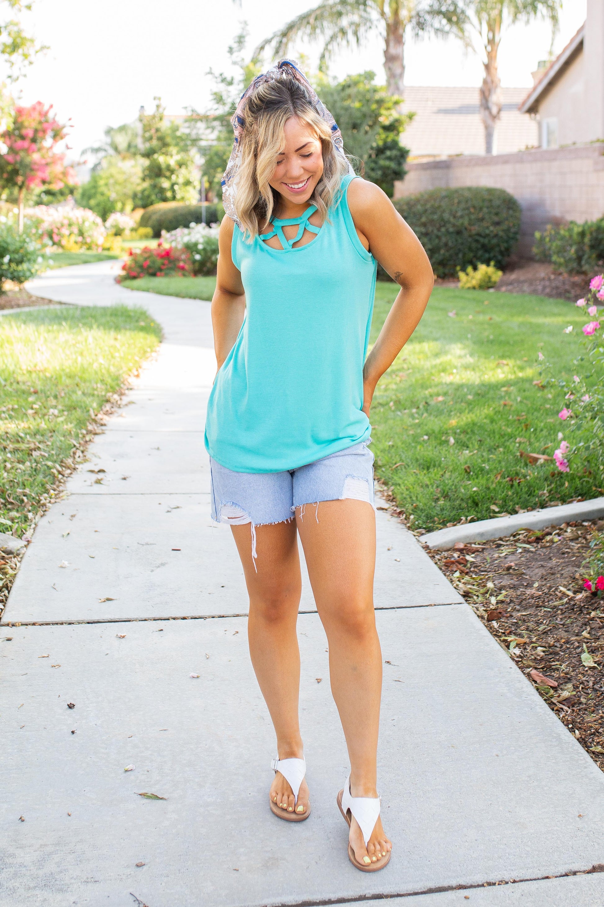 This sleeveless top is made from the softest, brushed fabric and is constructed so very well that it will last you for years and years to come. With a relaxed fit, this top features a round neckline with scoop neck cutout and criss cross detailing.