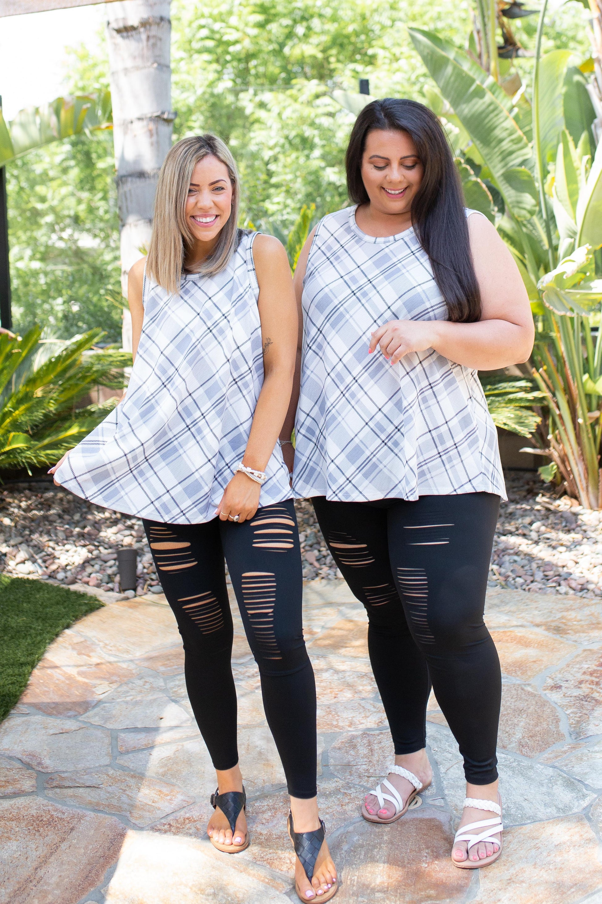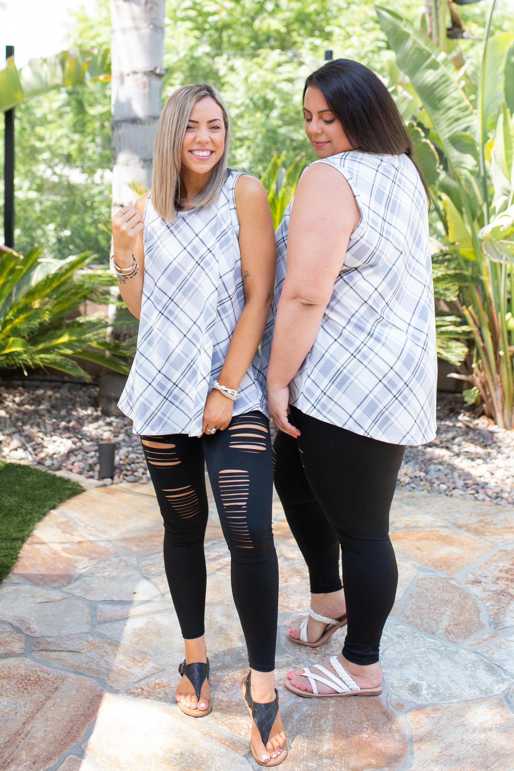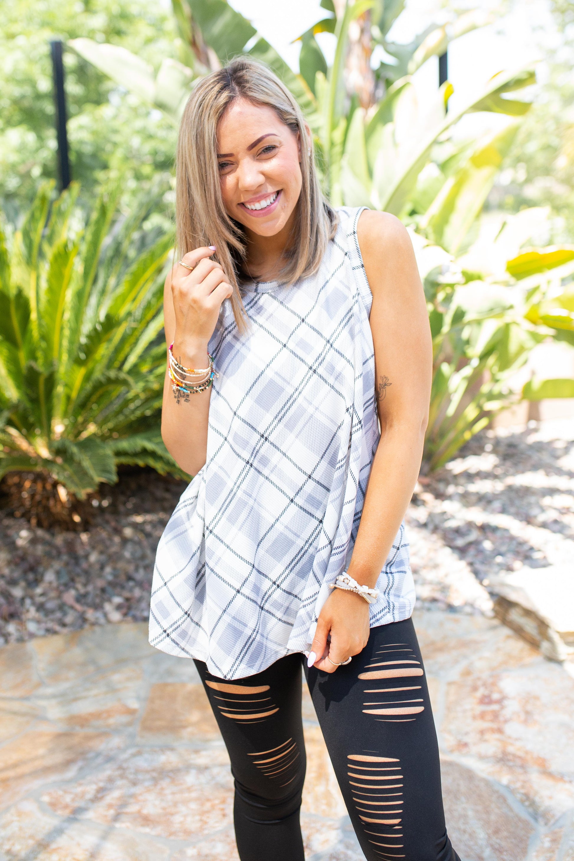 This plaid sleeveless top is one that you don't want to pass up. The fit is perfect and it's oh so flattering on all body types. With a relaxed fit, this top features a round neckline and rounded hem.