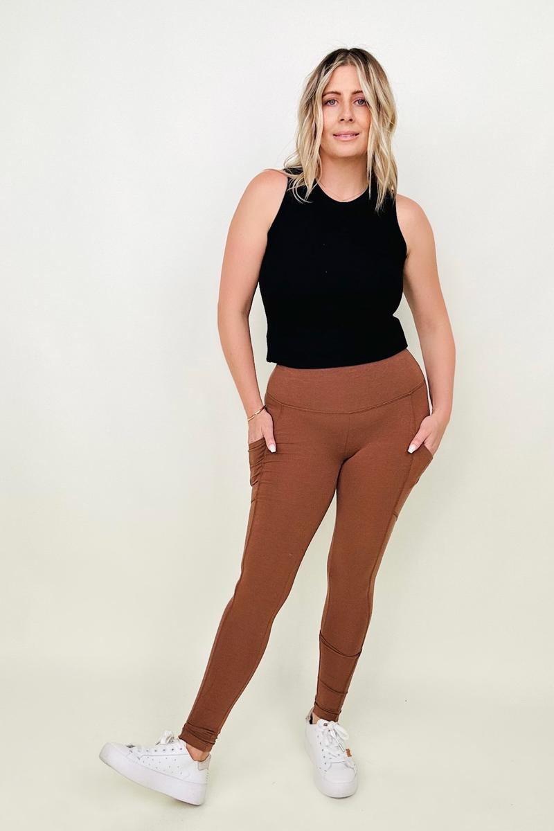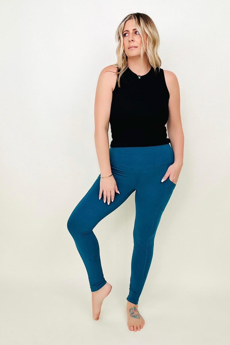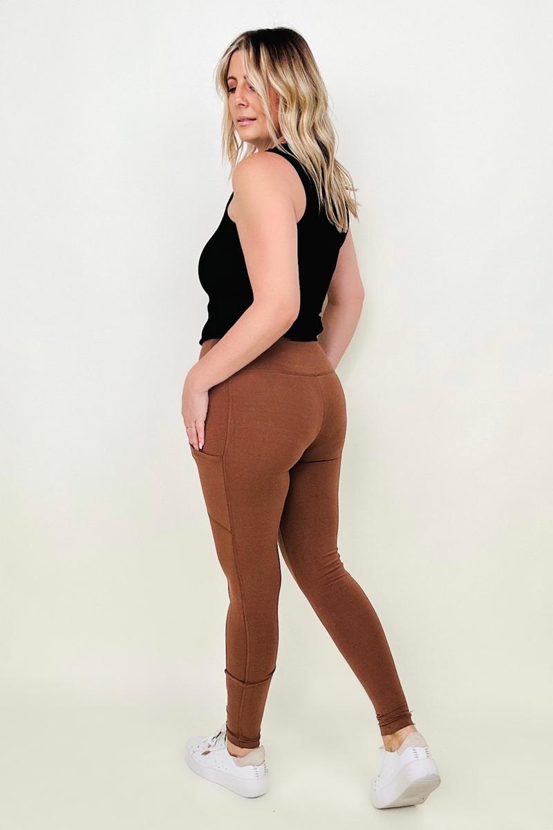 Zenana Cotton Wide Waistband Pocket Leggings
